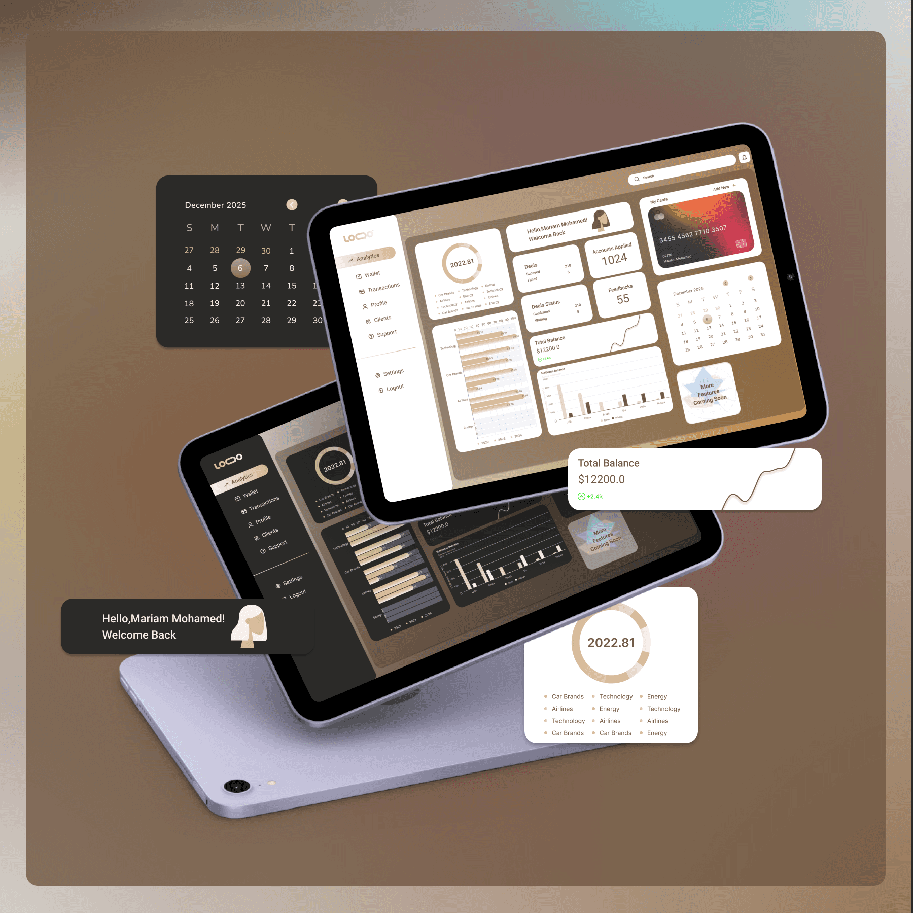 A data-driven dashboard designed to provide users with a clear, intuitive, and interactive overview of key metrics. Key Highlights: • Focused on information hierarchy to ensure data is easy to interpret at a glance • Applied consistent design Systems for scalability and visual harmony • Designed interactive components • Ensured responsive layouts for both desktop and tablet experiences • Conducted usability testing to validate clarity, accessibility, and efficiency The goal was to transform complex data into actionable insights through a clean, user-centered interface.
